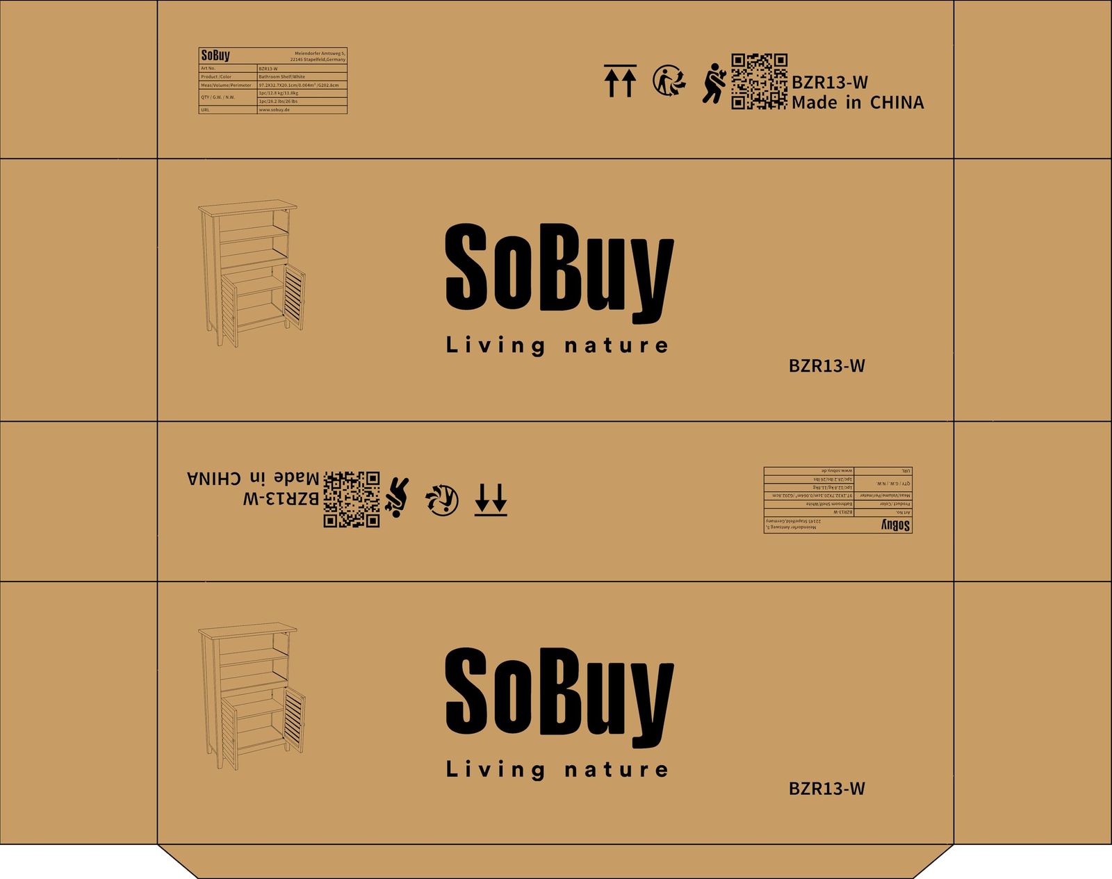 SoBuy サイドボード キャビネット リビングボード おしゃれ 幅60 奥26 高90 cm ラック付き 木製 北欧風 玄関 棚 収納 チェスト 洗面所収納 リビング収納 収納棚 食器棚 BZR 13 W