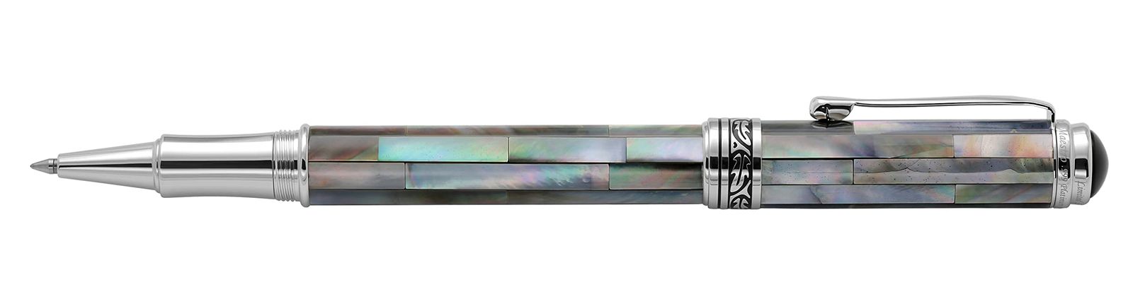Xezo Maestro Fine Point Rollerball Pen Handcrafted with Black Mother of Pearl Platinum Plated Limited Edition Serialized