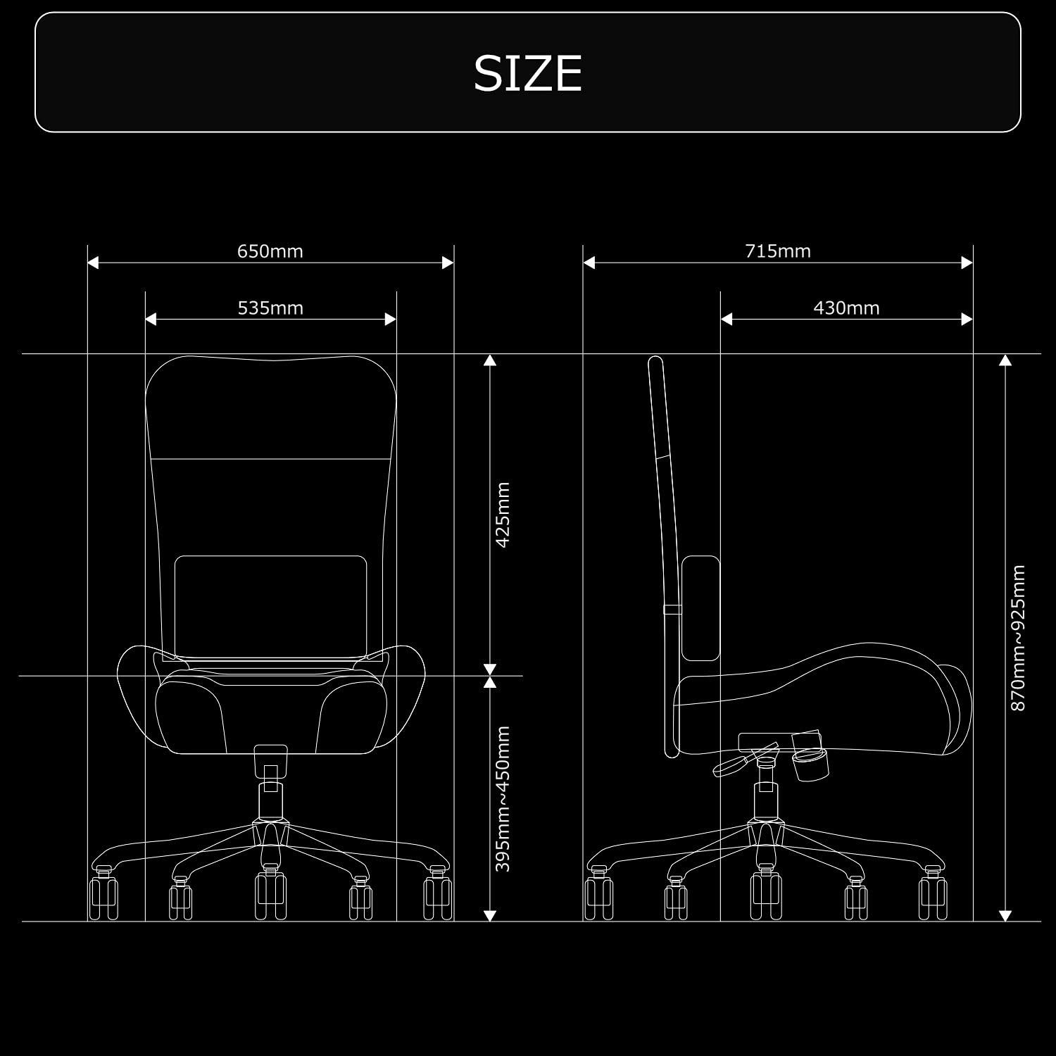 サイズ:幅63.5 × 奥行71.5 × 高さ86.5~92.5cm、座面高:38~44cm