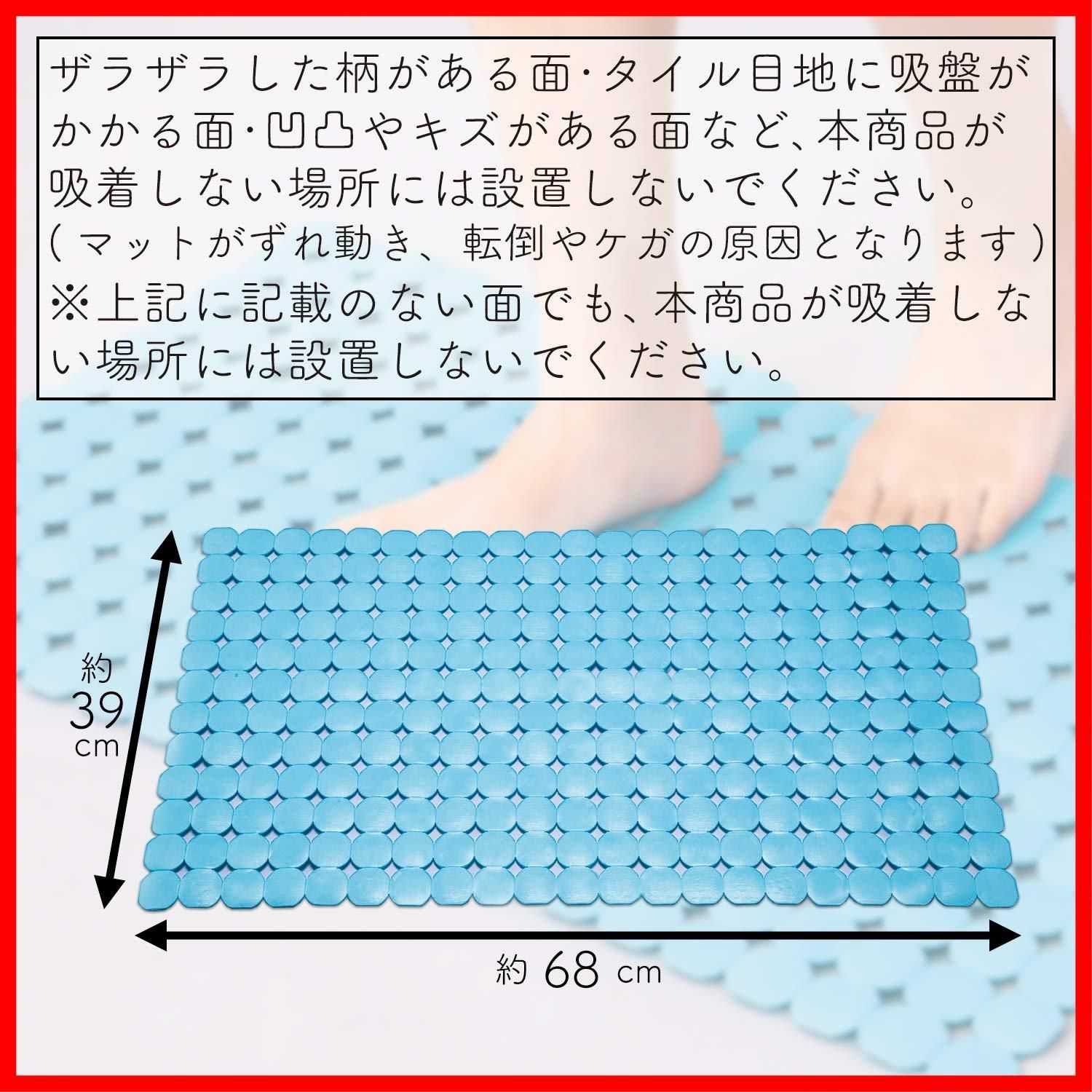 コモライフ 滑り防止バスマット 風呂 浴室 浴槽 滑り止め サイズ/約縦39×横68×厚さ0.5cm 介護 老人 妊婦 子供 吸盤 吸着 転倒防止