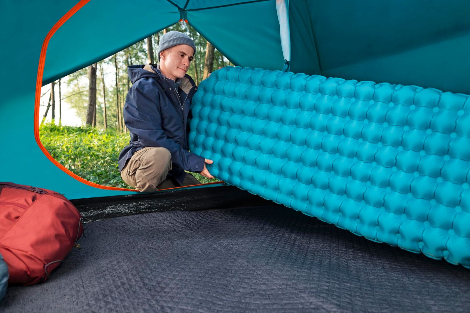 【ポンプサック】付属のポンプサックは、薄型軽量で簡単にパッドに空気を注入することができます。重い空気入れを持ち運ぶ必要がありません。