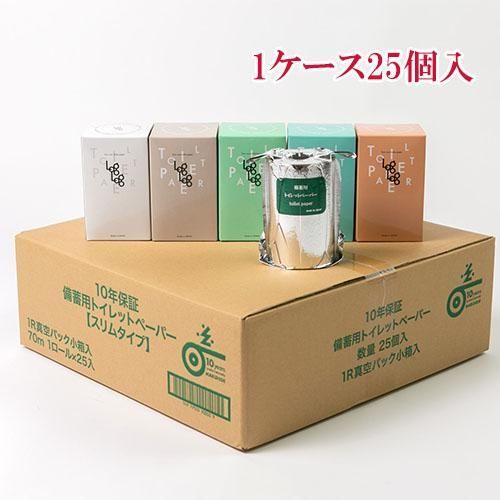 商品名:【1ケース25個入り】[MST-201] 10年保証 備蓄用トイレットペーパー LogLog(ログログ) 70m巻き 定型ボックス付き 定型ボックスシール添付