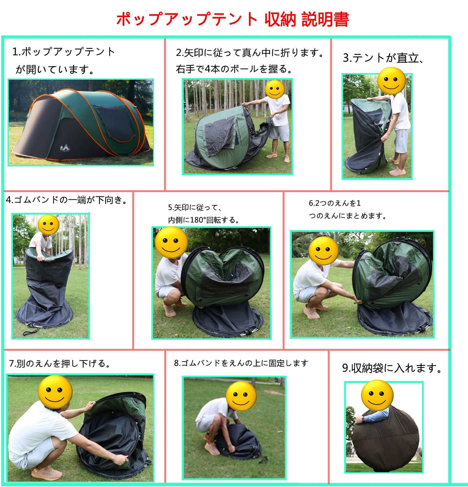 【ポップアップテント】大人5人?6人用 がゆったりと寝転べる広々空間の大型ワンタッチテント!