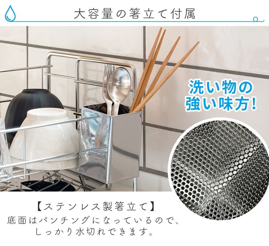 ・ステンレス製箸立てが付属。底面にメッシュ加工を施してあるので、通気性も排水性も抜群