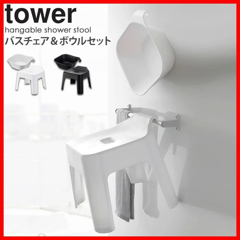 マグネット 引っ掛け湯おけ 座面高25 cm 2点セット tower お風呂 引っ掛け風呂イス バスルーム 浮かせる収納 ホワイト 山崎実業 Yamazaki 5383 5378