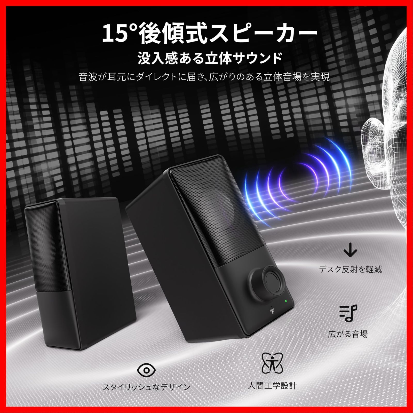 【業界初 15°後傾式スピーカー&最新Bluetooth5.4対応】 kstime PCスピーカー バスレフ低音強化 ゲーミングスピーカー Hi-Fiステレオ 有線・無線接続対応 USB給電 AUX対応 最大出力14W 内蔵マイク 前面イヤホン端子付き モニター タブレット スマートフォン対応 パソコンスピーカー ブラック
