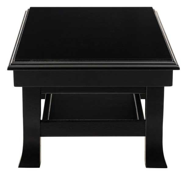 小ぶりなサイズのテーブルとしてもご使用いただける大きさです。ぼんやりとした光沢が格調高い趣のある雰囲気を演出します。また天板にあしらわれた段付き小口は高級感を演出し、クラシックで和モダンな印象に仕上げました。棚板は薄く木縁で覆ったトレー型になっています。脚は床に向かって太くなる形状で、安定感と畳にもやさしい設計です。※棚板を取り外してのご使用はできません。