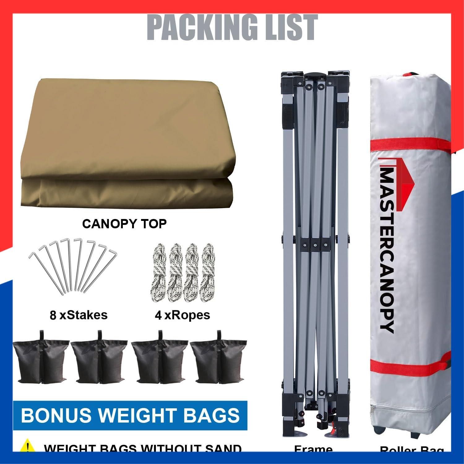 マスターキャノピー(MASTERCANOPY)ワンタッチタープテント 2M/2.5M/3M 三段階調節 スチールフレーム 風抜けベンチレーション 耐水 UVカット サンシェード 日除け 商用 アウトドア用(キャスターバッグ ペグ ロープ ウェイトバッグ付き)(3M,カーキ)