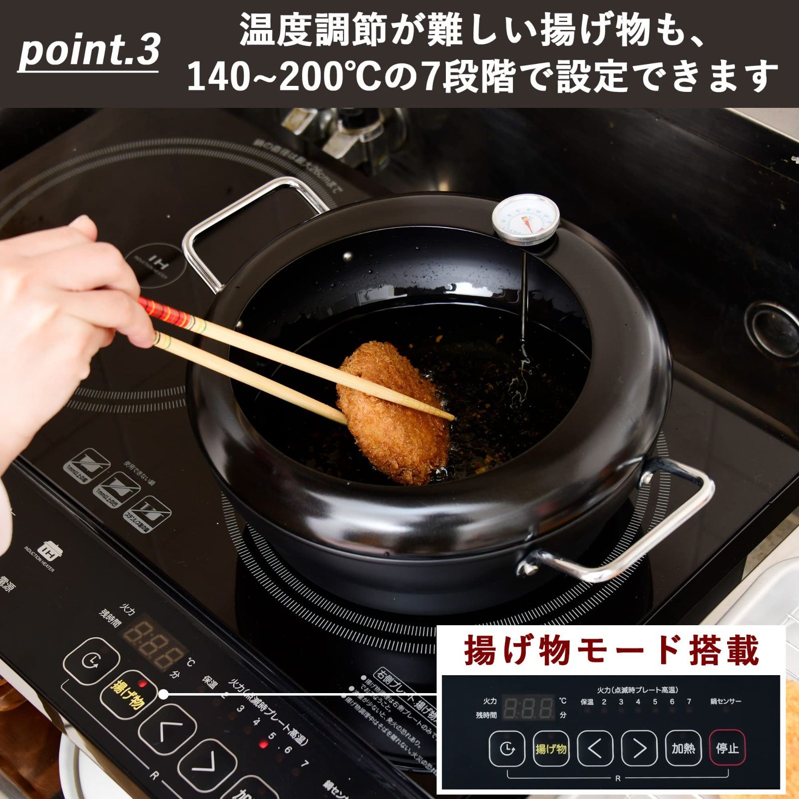 対応鍋サイズ:12~26cm(揚げ物時は18~24cm)