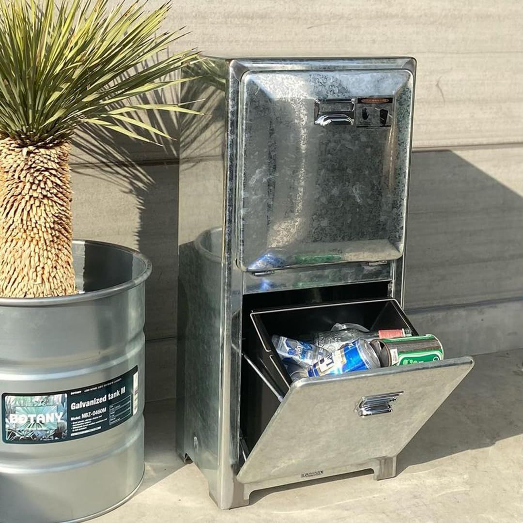 ゴミ箱に見えないトラッシュカン「ダブルデッカー」のRAWカラーです。インナーボックス、プルハンドル、アジャスター機能を備えています。カラー展開はビビッドカラーを含む8色です。RAW仕上げの製品についてクロムメッキやカラータイプとは異なり、サビや擦れ等の加工を施しております。また、色味や仕上がりの風合いに個体差が見受けられます。RAW仕上げの特性として予めご了承ください。サイズは1~2cmの個体差がある場合がございますので記載サイズより余裕のあるスペースに設置してください。※ご購入前は注意事項をご確認下さい。商品に関する注意事項上下2つのドアを同時に開いた状態でにしないで下さい。重みで転倒する恐れがございます。重たいビン等のゴミは下のダストボックスに入れて下さい。ドアの開閉時に隙間に指や手等を挟まぬよう、十分ご注意下さい。フローリング床、クッションフロアの上でご使用になる際は、下にマットや布を敷いてご使用下さい。ダストボックスの角でケガ等ないよう、取扱いには十分ご注意下さい。小さなお子様がご使用になる際は、大人が同伴のもと行って下さい。設置時、転倒を防ぐため、本製品裏側についているアジャスターの高さを調節し前方を後方よりもやや高くして下さい。設置後、本製品にがたつきがある際は、本体裏側のアジャスターを調節して下さい。湿気がある場所でのご使用はお避け下さい。本製品を水洗いしないで下さい。汚れた際は、中性洗剤に浸した柔らかい布等で軽く拭き取って下さい。