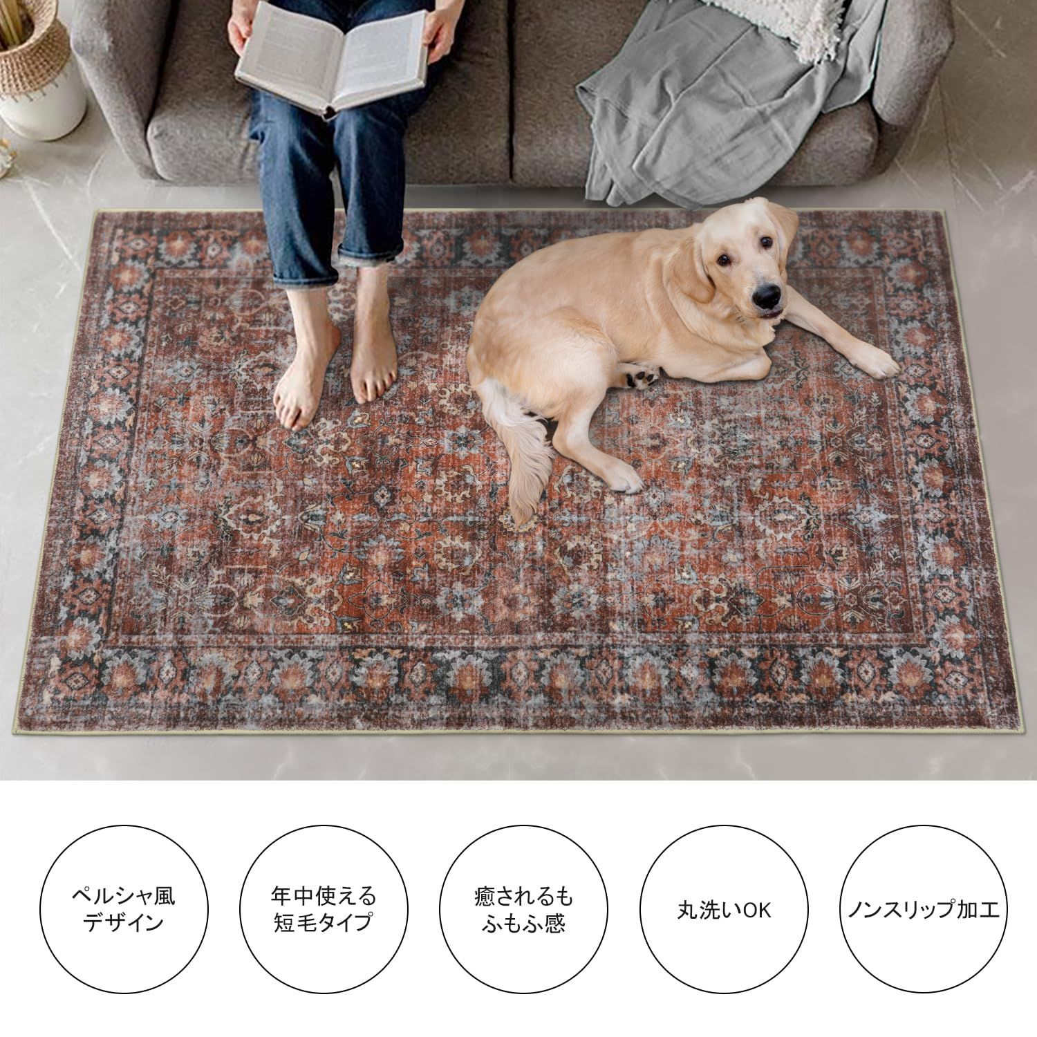 HAOCOO ラグ カーペット 洗える 140 200 cm オールシーズン適用 絨毯 ペルシャ風 ラグマット 1 5畳 ふわふわ おしゃれ 滑り止め 低反発 防ダニ 防臭 軽量 防音マット 室内用 デスクマット ダイニングマット アンティーク 花柄