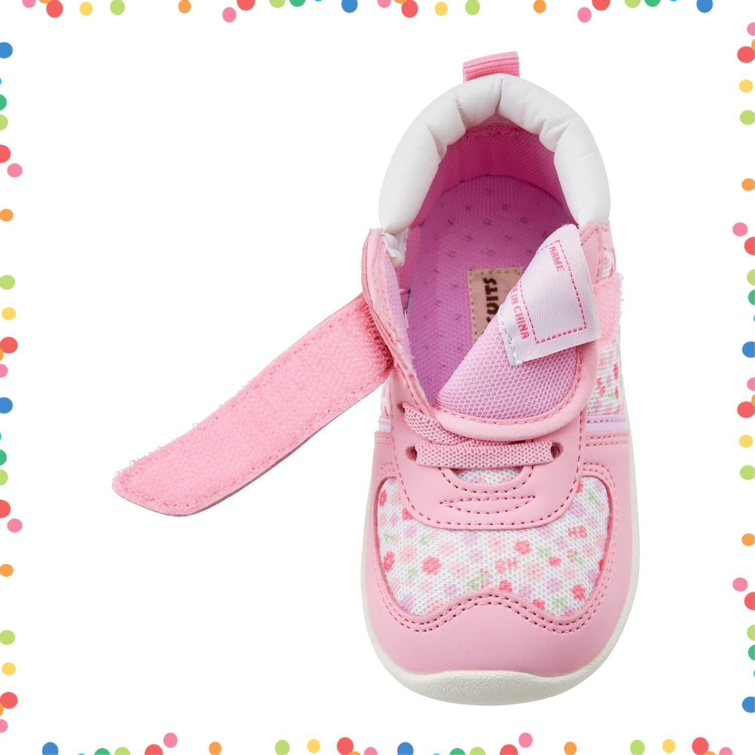 スポーティなメッシュ素材のシューズは通気性抜群! カップインソール付きでお手入れも簡単で清潔に保てるので、 保育園や幼稚園の通園用にもぴったり! 白はシンプルさのなかに目を引く爽やかな赤×紺のワンポイントラインがポイント! 男の子はもちろん、女の子もカッコかわいく履いていただけます。 ピンクは女の子に支持が高いキュートなお花柄!きっとお子様も喜んで履いてくれますよ。 マルチカラーはユニセックスなデザインで、コーディネートのアクセントになります。 セカンドシューズにもミキハウスのこだわりのクオリティがたくさん詰まっています。