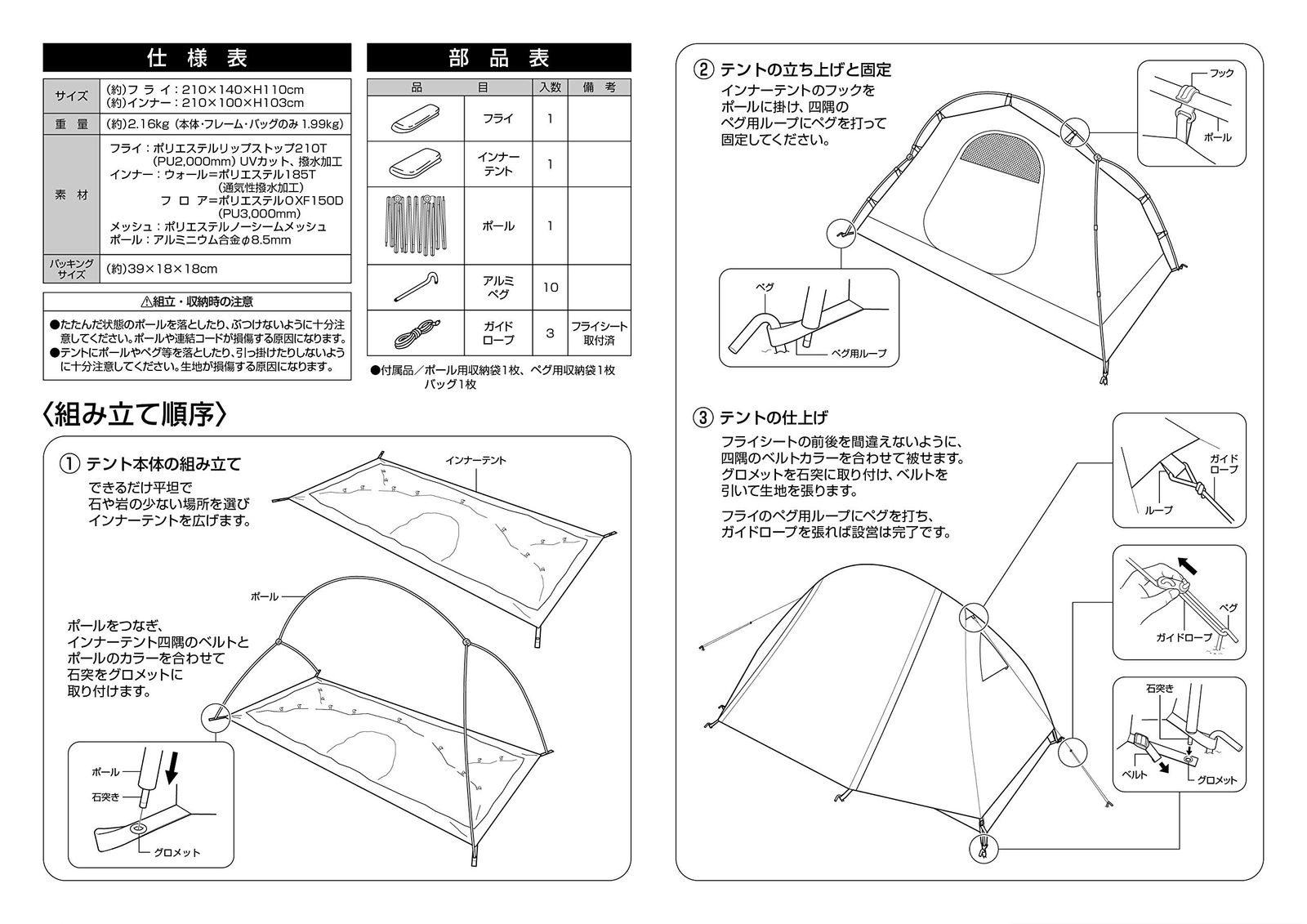 キャプテンスタッグ CAPTAIN STAG テント ソロテント 1人用 サイズ 210 140 H 110 cm パッキングサイズ 39 18 UV PU加工 収納バッグ付 トレッカー UA 71 52