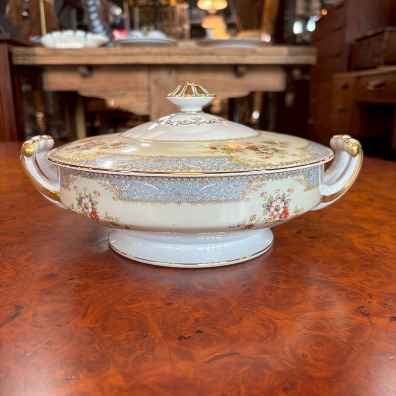 ◆商品名:希少品 オールドノリタケ ビンテージキャセロール NORITAKE CHINA Bluedawn レトロ 金彩 花柄 蓋付きキャセロール鍋 スープチューリン 当時物【CA0622-1】