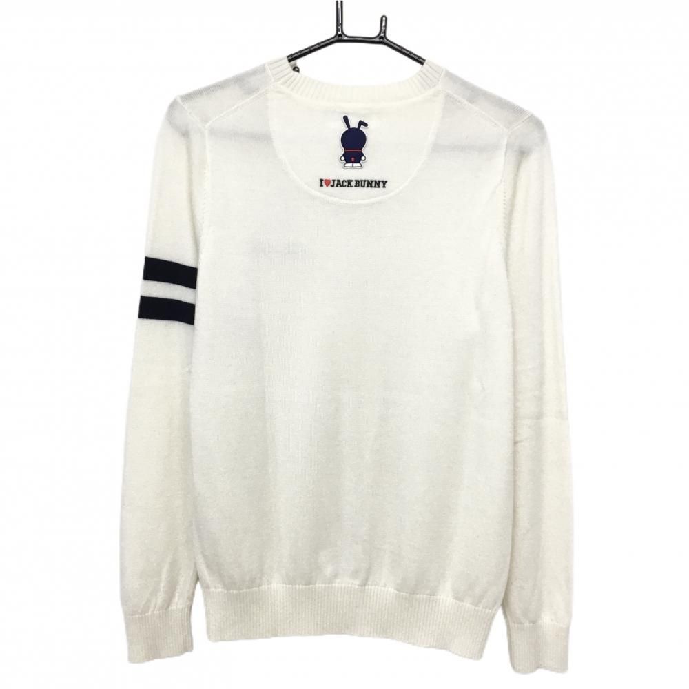 超 ジャックバニー×ドラえもん セーター 白×ネイビー ニット ウール混 袖ライン レディース 2 L ゴルフウェア Jack Bunny
