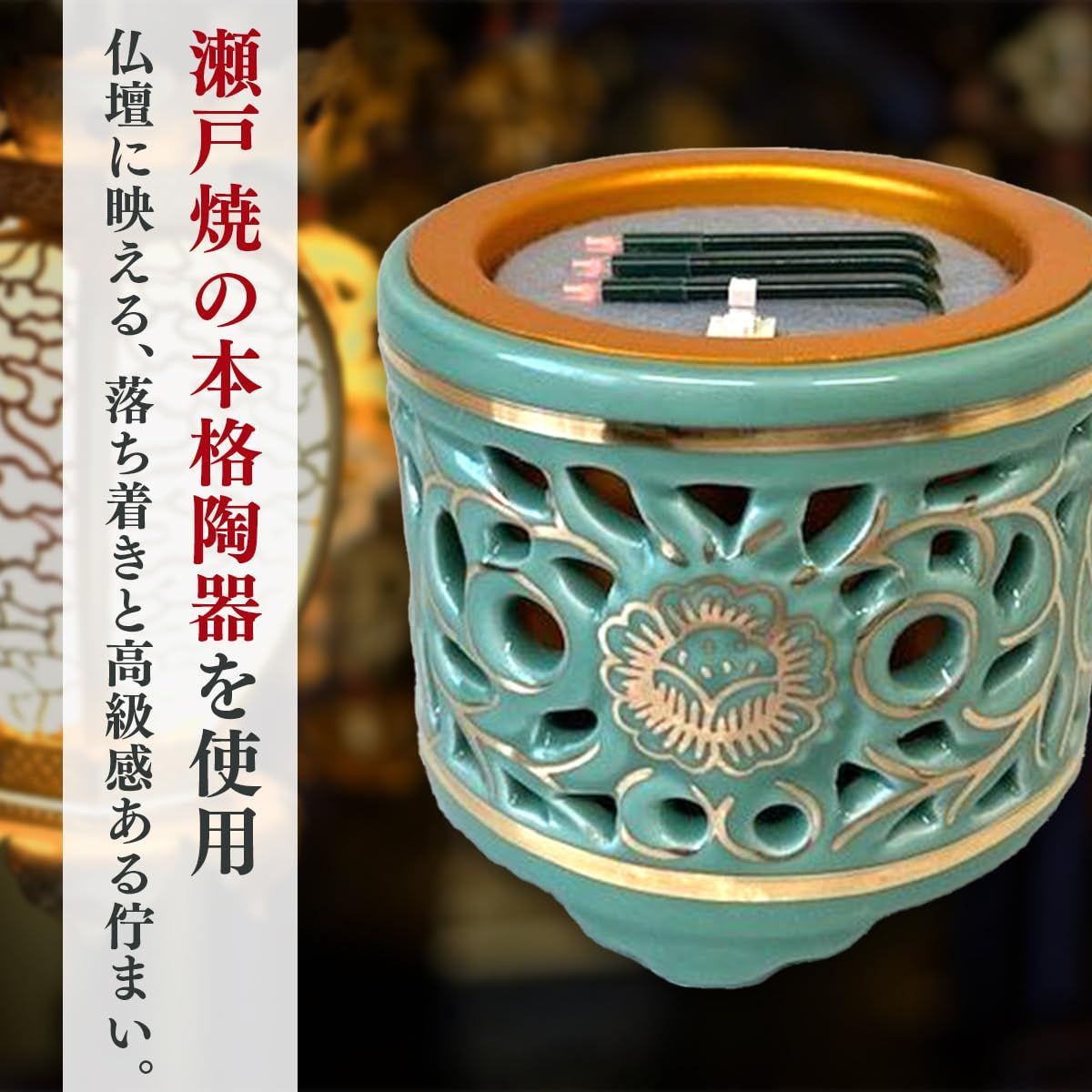東用 2 5寸 差金付 透かし香炉 寝かせ線香タイプ サンやすらぎ LED電子線香 仏具 火を使わず安全な電子線香