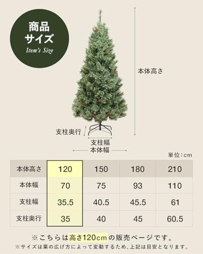 【ボリュームのある枝数】 枝数が多く葉の密度が濃いためボリュームがあるツリーに。そのまま飾ったり少ないオーナメントでも存在感があります。 【組立て&収納しやすい】 上段・下段・スタンドの3分割構造。パーツを差し込むだけの簡単組立て。オフシーズンはコンパクトに収納できます。