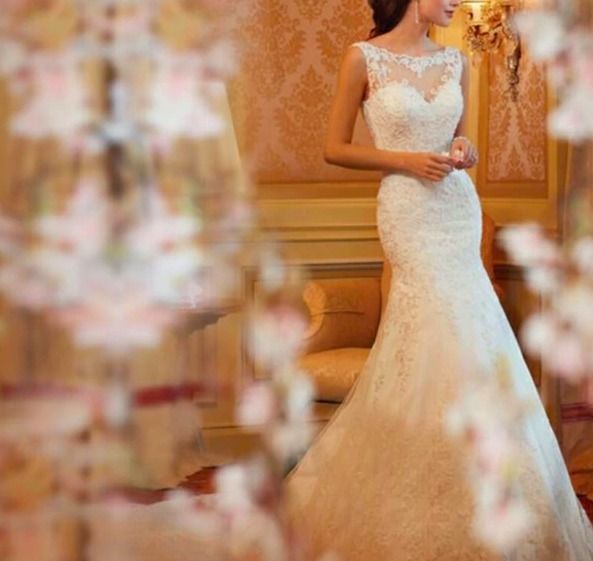 マーメイド ロング ウェディングドレス ノースリーブ 花柄レース