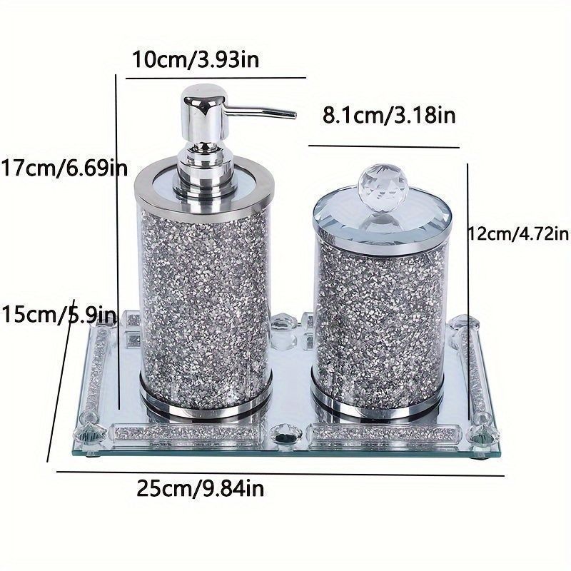 ポンプボトル ディスペンサー ソープディスペンサー 3点セット キラキラ ガラス ハンドソープ用 詰め替え 小物入れ トレイ ホテルライク 4
