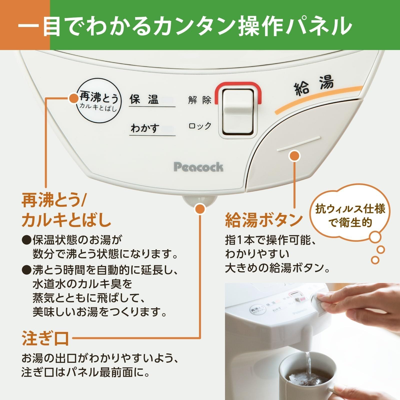 商品 ピーコック魔法瓶 電気ポット 3 L 省エネ 節約 湯沸かし ポット 保温ポット 再沸騰 カルキとばし機能付き 湯沸かしポットライトグレー WMS 30 HL