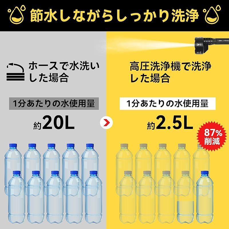 商品名:【2025年新登場・進化モデル】高圧洗浄機 コードレス 充電式 マキタ互換バッテリー|強力噴射10M距離|6in1ノズル・自吸式・水道不要|軽量携帯型 多機能洗車機・ベランダ掃除・年末大掃除に最適|日本語取扱説明書付き