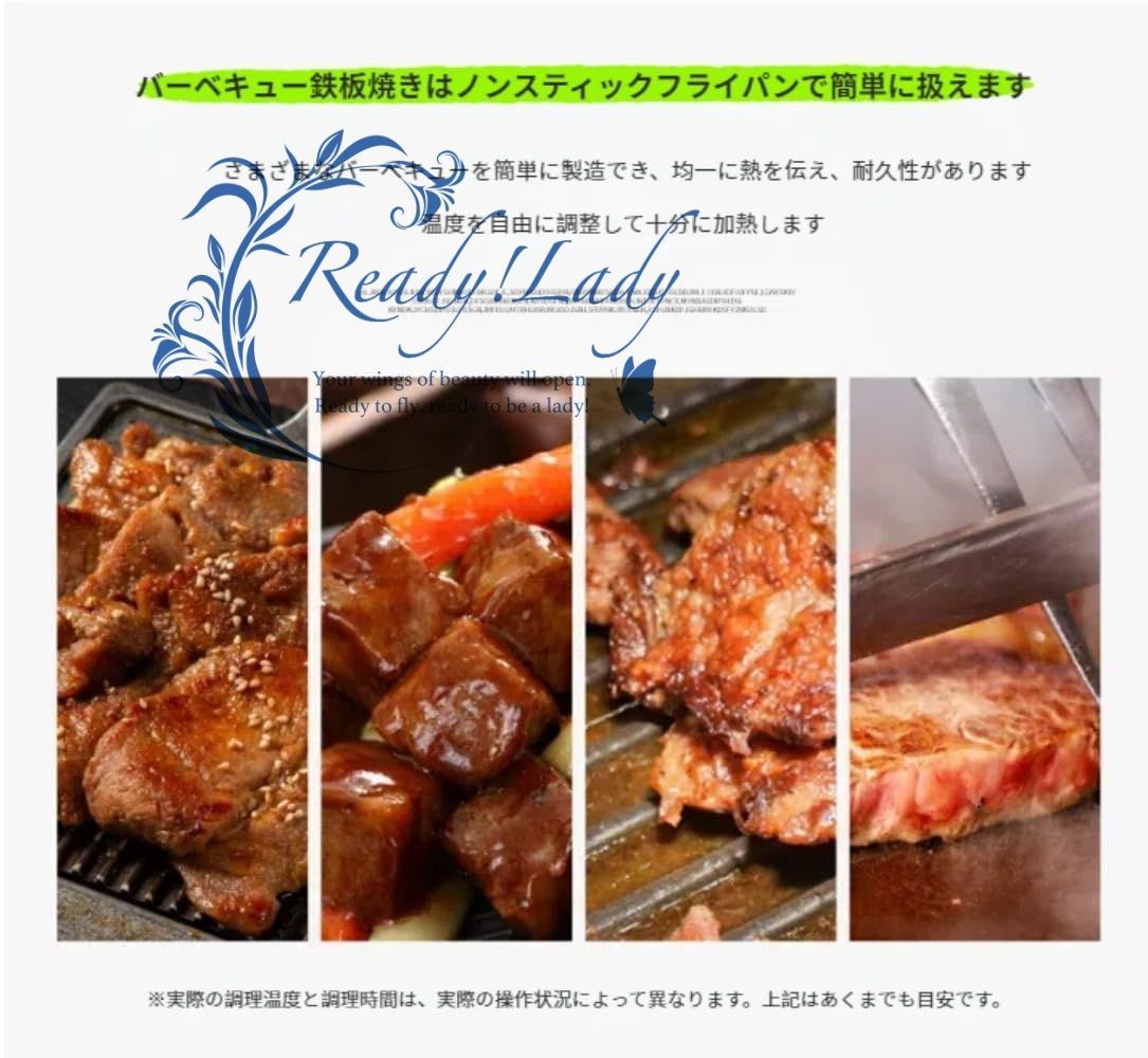 ステーキ、バーベキュー、鉄板焼き、焼き餃子など、1台で様々な用途に使えます。