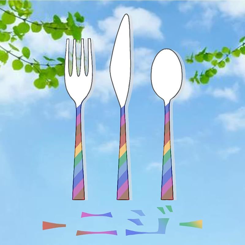 素材・材質:18-8ステンレス(SUSXM7) / ディナーナイフのみステンレス / 多重発色+発色面クリア焼付塗装