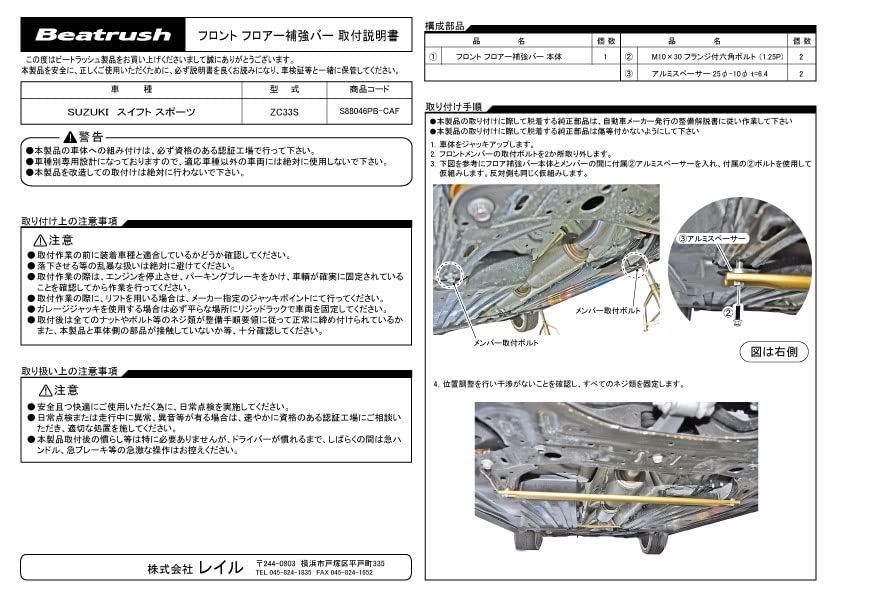 スズキ スイフトスポーツ ZC 33 S フロントフロアー補強バー Beatrush ビートラッシュ CAF