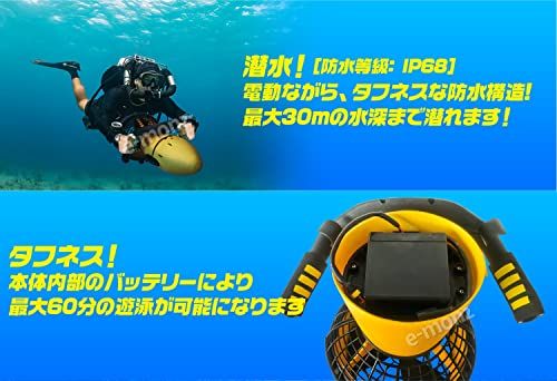 eモンズ シースクーター EM 3001 300 wパワー 水深30 m 最大速度5 km|h 最大60分 ターボ機能 充電式バッテリー 密閉型 防水IP 68 水中スクーター 電動水中スクーター 電動スクーター スキューバダイビング シュノーケリン d 849 2 ca