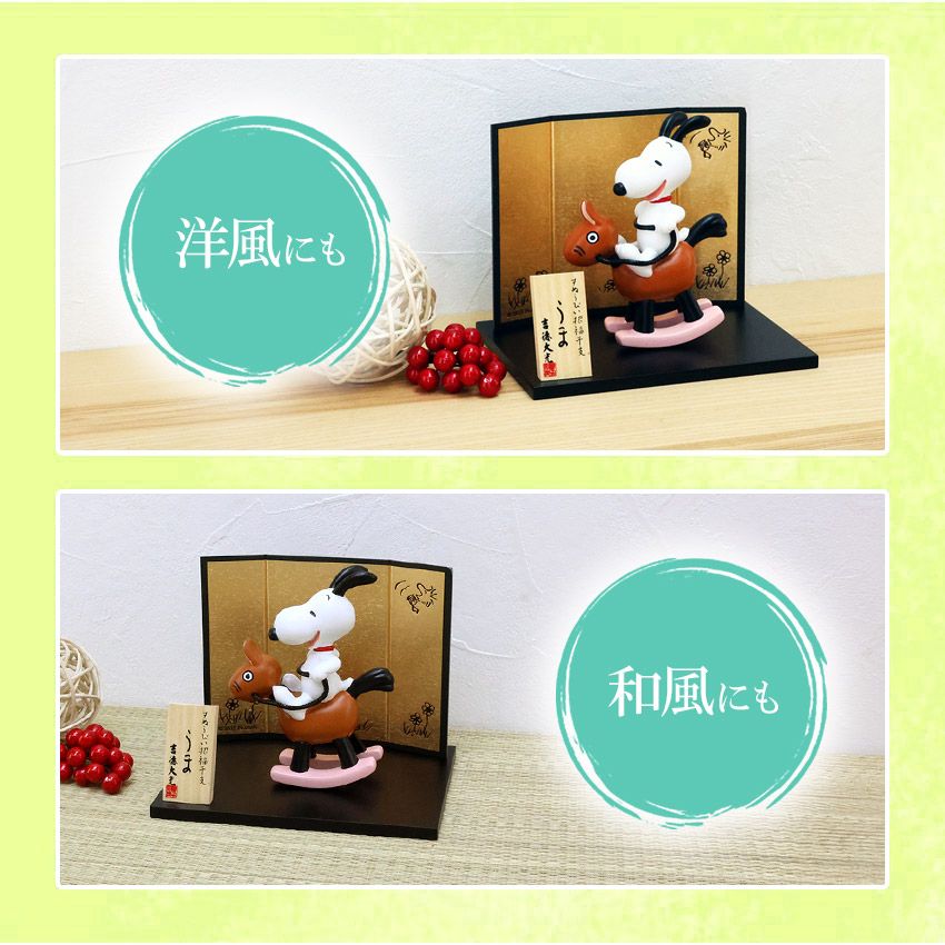 かわいい午にまたがったにっこり笑顔のスヌーピーの干支飾りです。まだ誰も見たことのない、キュートでフレッシュな姿のスヌーピーをお楽しみください!
