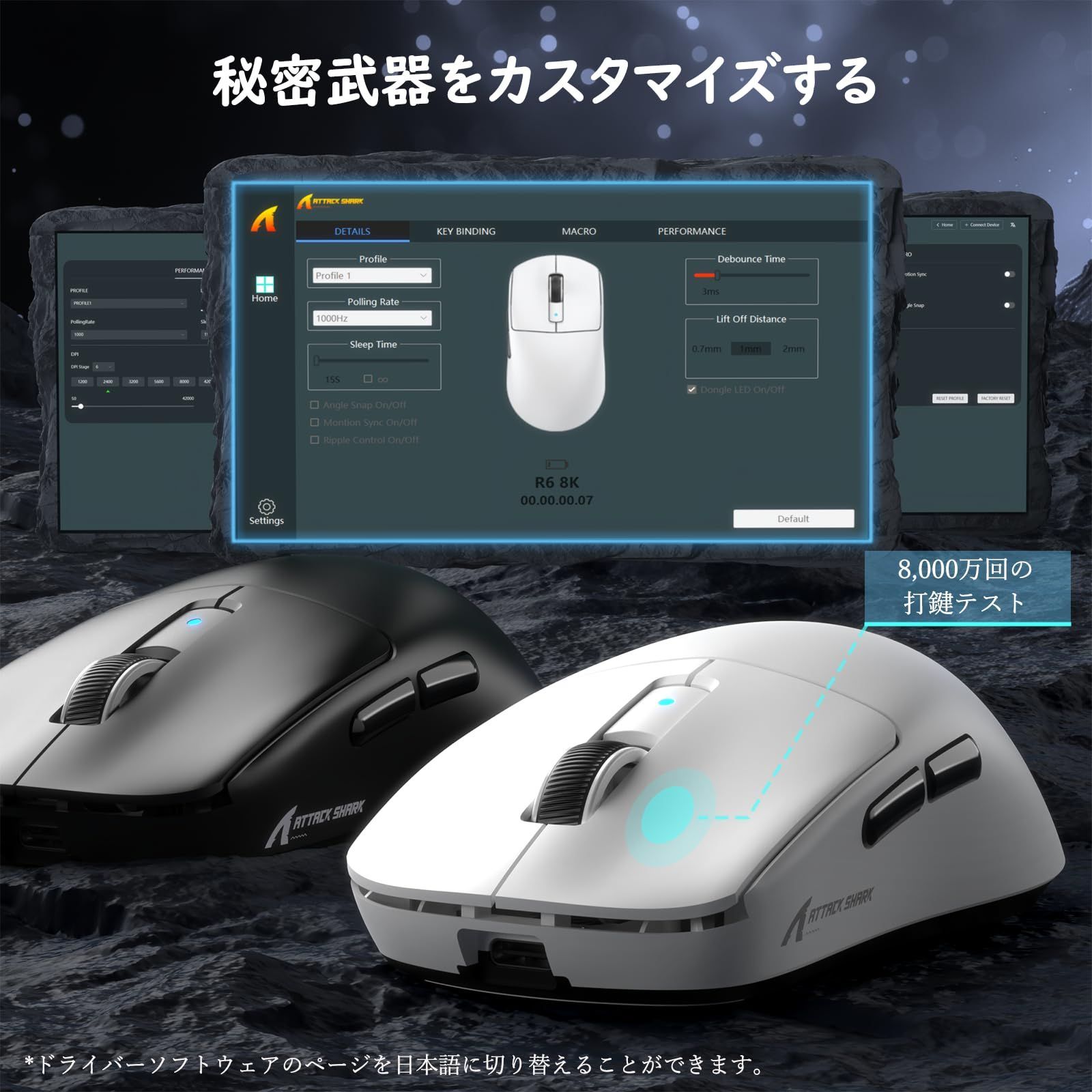 39 g超軽量ゲーミングマウス 8000 Hz PixArt R 6 ゲーミングセンサー Nordic SHARK 52840 ATTACK MCU 3モード連続 無線BT 2 4 Gワイヤレス 有線 氷感コーティング