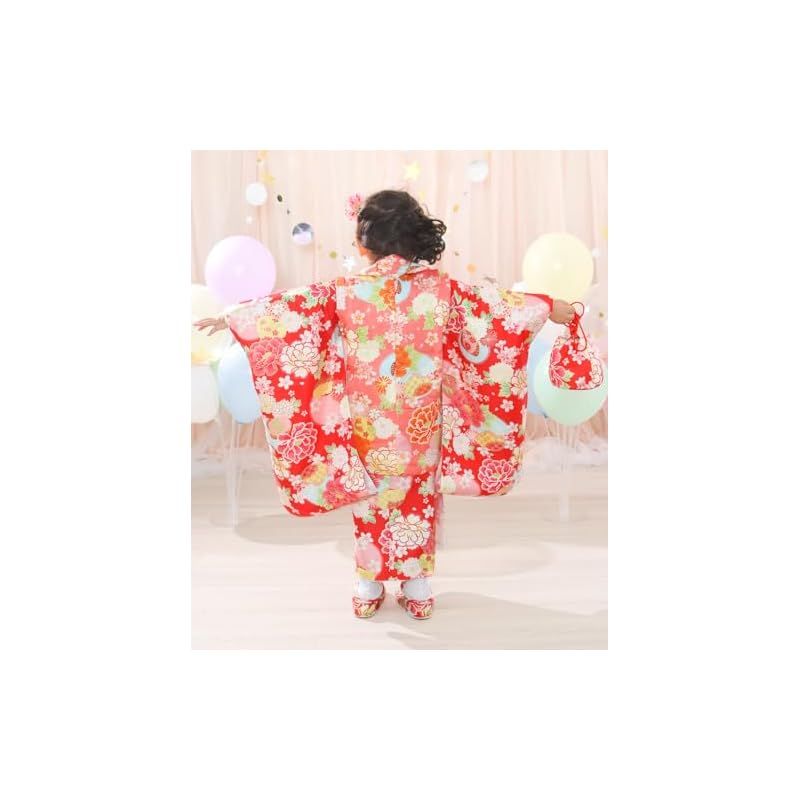KYOETSU キョウエツ 着物セット 七五三用 3歳用 被布セット 華やかA 9点セット 柄被布 柄着物 伊達衿 長襦袢 髪飾り 巾着 草履 腰紐 足袋 ガールズ 9 花華絢爛 0