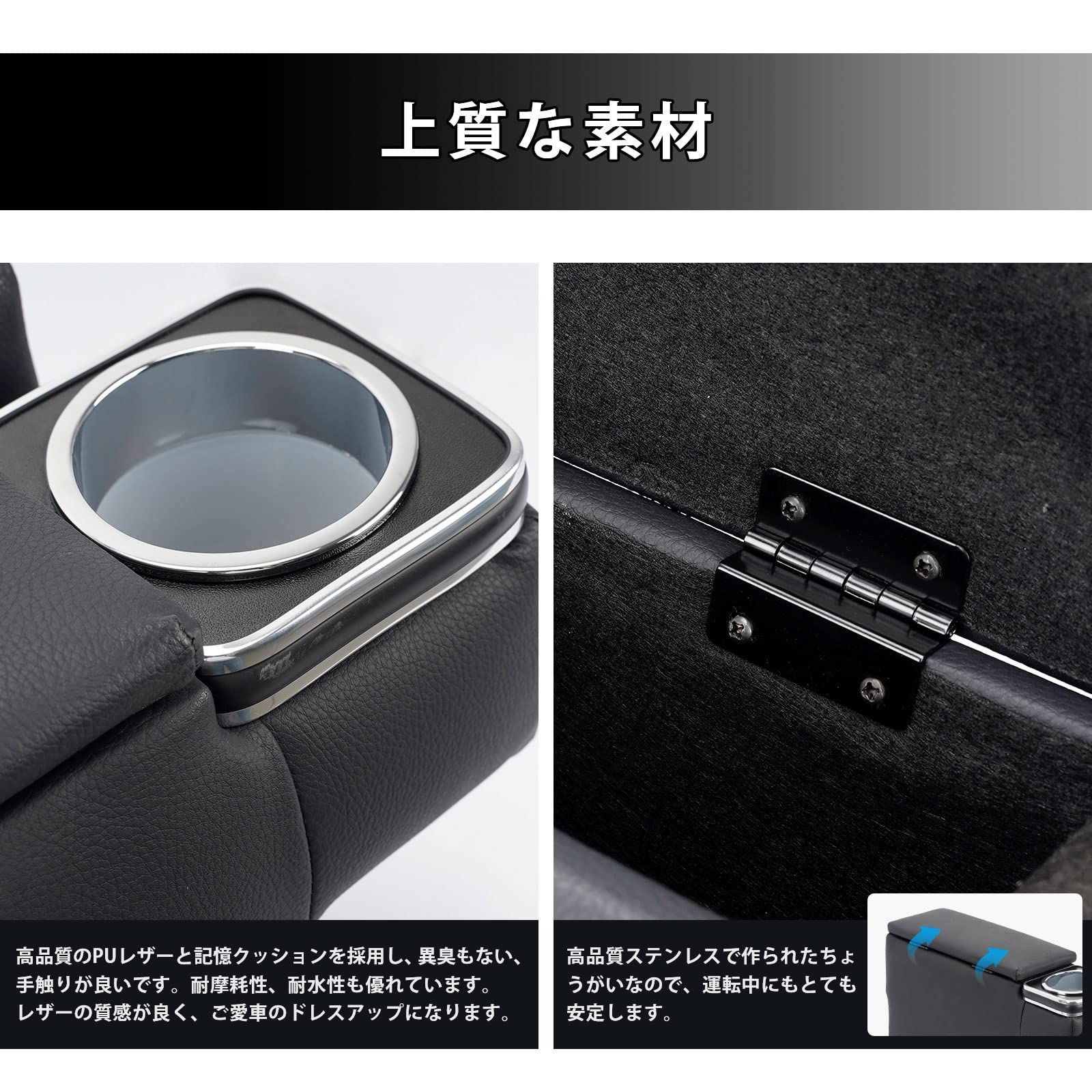 BUYFULL コンソールボックス ハイエース 200系 セット アームレスト付き 小物入れ収納ボックス 肘置き 落下防止 PUレザー 内装カスタムパーツ H 標準 ワイド GL スーパーGL 1型~8型 2004 8~