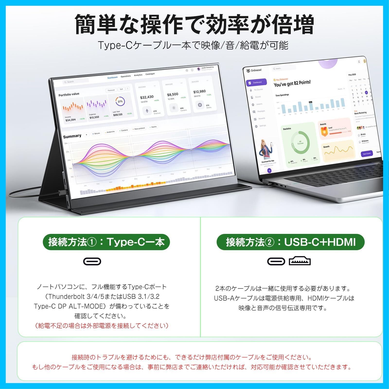 ポータブルモニター IPS液晶パネル 非光沢画面 モバイルディスプレイ 薄型 軽量 1920 1080 マグネット保護カバー付き USB 15 6インチ Type C ミニHDMI モバイルモニター PS 4 XBOX Switch PC Macな