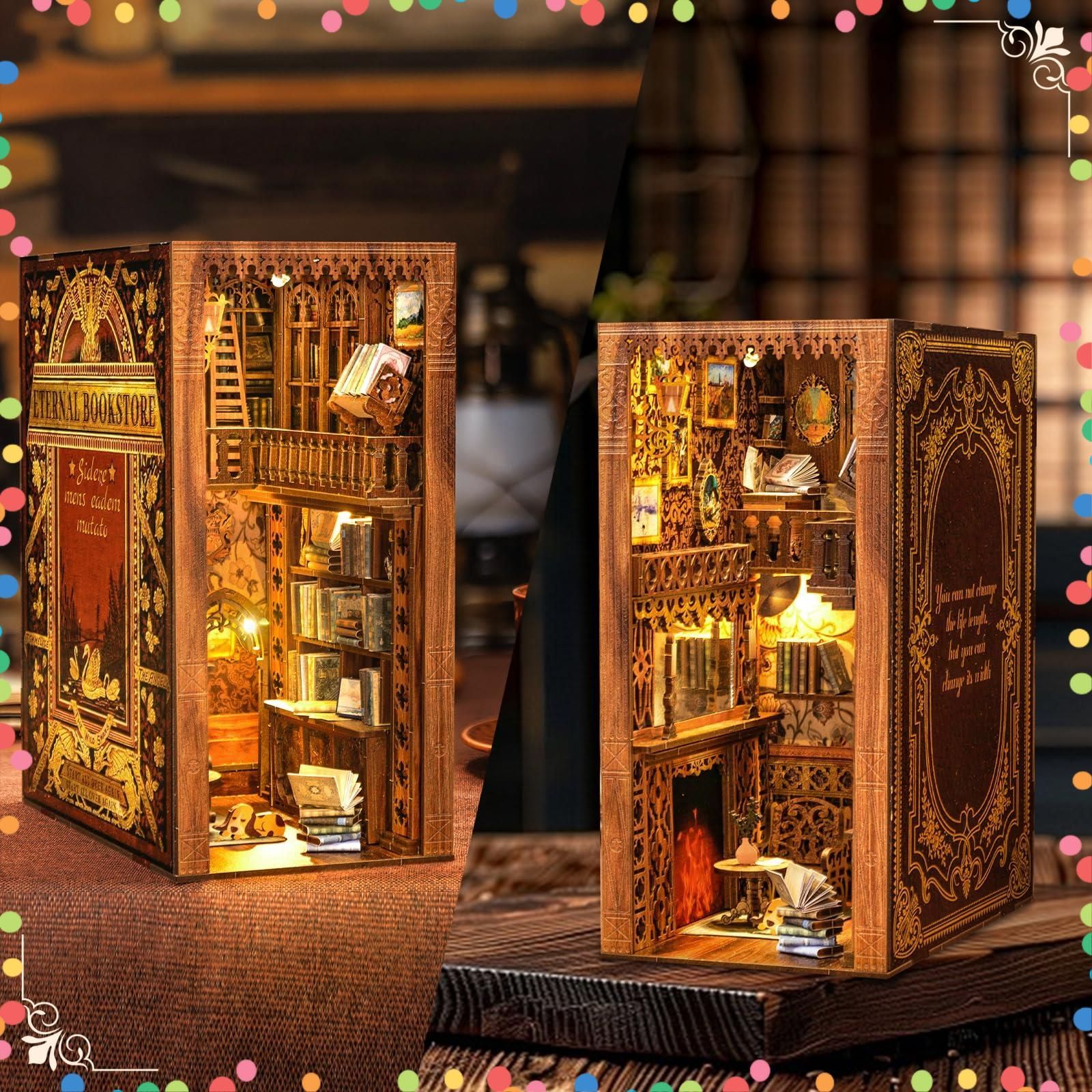 CuteBee-ブックヌック キット-ドールハウス-ブックヌックシリーズ-BookNook-DIY木製-永遠の書店-ドールハウスキット-本棚の装飾品 手作り木製ギフト 手作りキット 初心者 大人向け