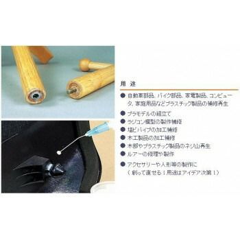 固まればプラスチックそのもの。化学結合で強力補修!!折れ・割れ・欠けを再生補修出来るキットです。強力溶着・穴うめ・ネジ山再生まですべてこれ1つでOK!!