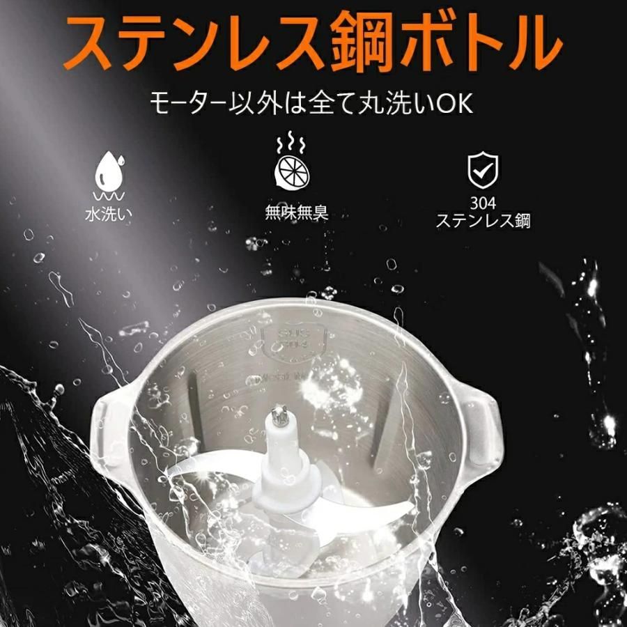 400Wの強力モーターとS字型二層ステンレス刃で、肉・魚・野菜・ナッツなどを約10秒で素早くカット。調理の下ごしらえを大幅に短縮。