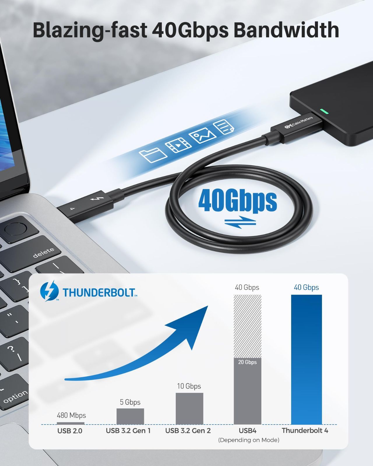【Intel認証】Cable Matters 40Gbps Thunderbolt 4 ケーブル - 2m、Active サンダーボルト4 ケーブル、100W充電 ・8Kビデオ対応、USB4 / Thunderbolt 3 / USB-Cに完全対応