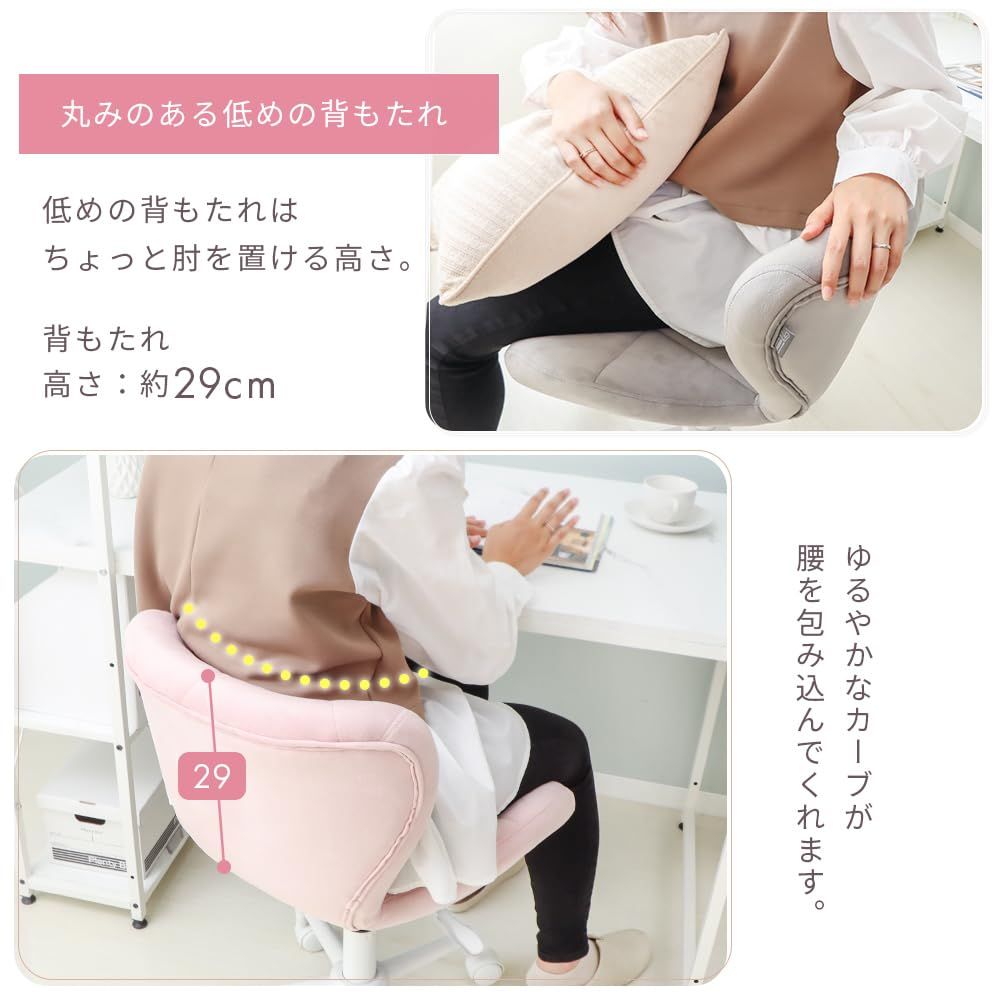 腰まで支える高さ約29cmの低めの背もたれ。肘を置くこともできるちょうどいい高さです。シンプルなデザインで男女問わずおススメ。どんなお部屋に合わせやすいように色を豊富に用意しております。