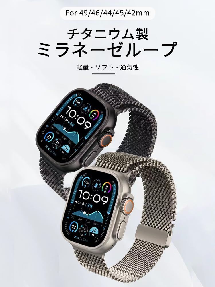 for Apple Watch バンド チタニウムミラネーゼループ 30g チタン製 49mm 46mm 45mm 44mm 42mm アップルウォッチバンド メッシュ 無段階調節 軽量 装着感 iwatch バンド 145-210mmの手首に対応