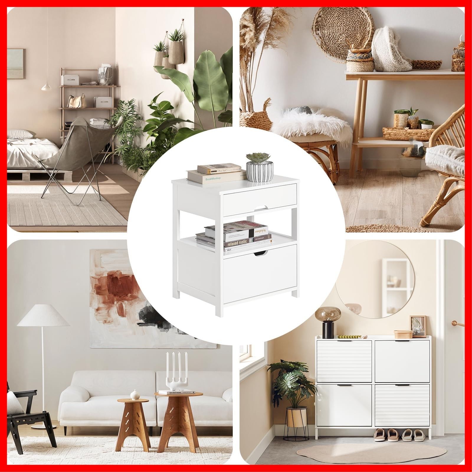 ベッドサイドテーブル ナイトテーブル ベッド横 テーブル 幅45×奥行き37.5×高さ55cm おしゃれ 北欧 電話台 サイドチェスト ベッドテーブル ベッドサイド 収納(FRG258-W/ホワイト)