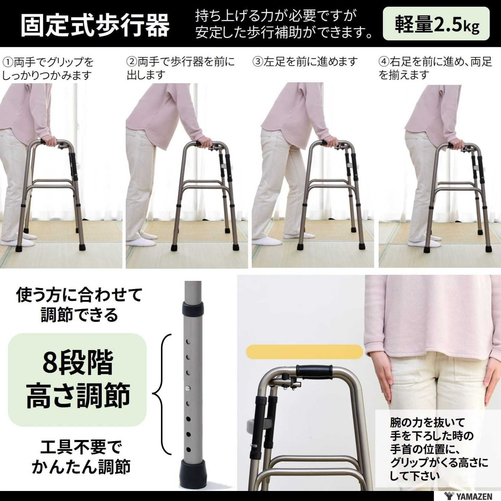 山善 YAMAZEN 歩行器 立ち上がり補助 完成品 固定式歩行器 8段階高さ調節 折りたたみ 軽量 室内 杖 手すり 高齢者 ブロンズ KFW 16 BZ