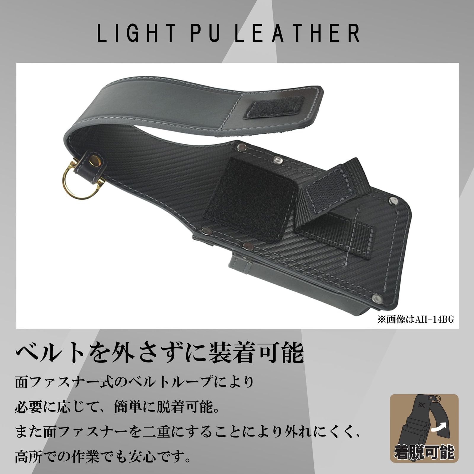・面ファスナー式のベルトループにより、ベルトを外さずに簡単に着脱可能