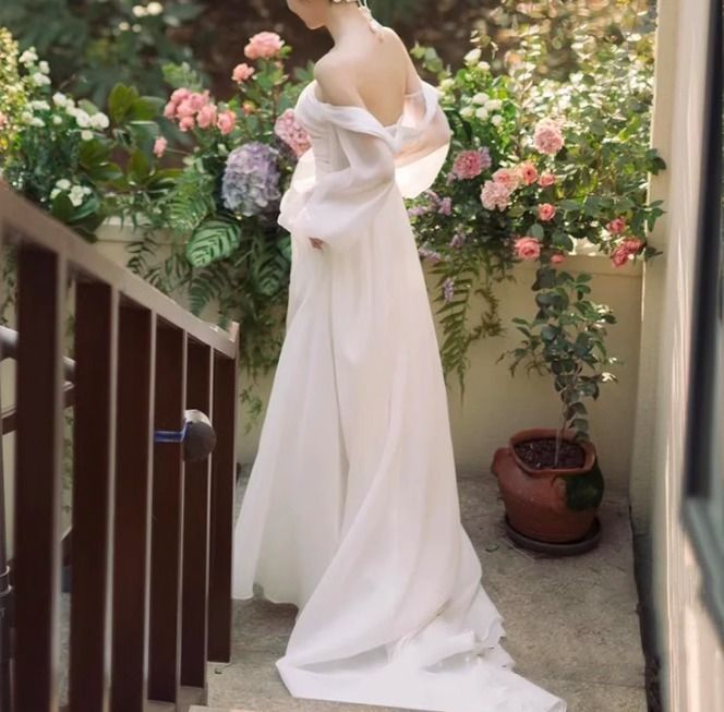 ボリューム袖 ウェディングドレス 長袖 オフショル Aライン 韓国