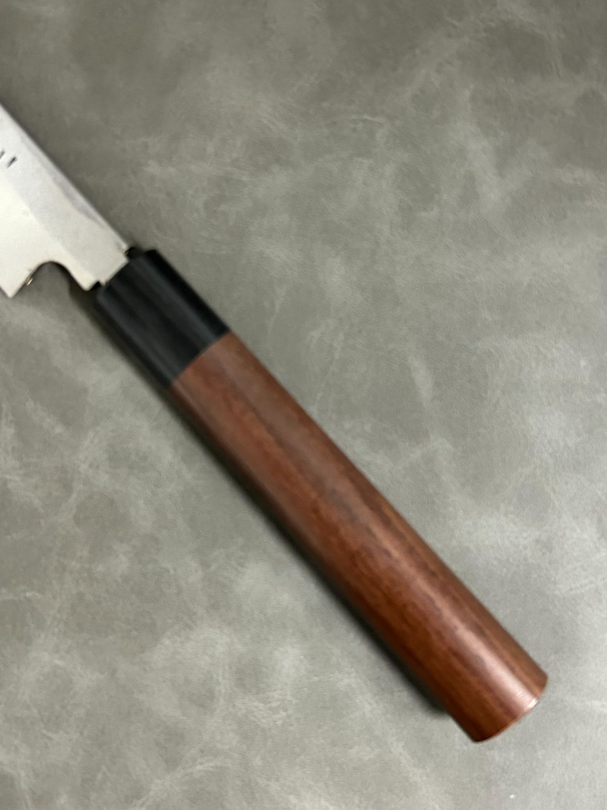 柄は紫檀シノギを使用しており、見た目が美しい和包丁に仕上がりました。