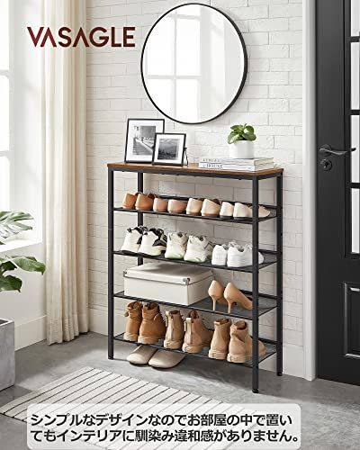 VASAGLE シューズラック 下駄箱 おしゃれ 省スペース 5段 大容量 木製 玄関収納 収納家具 シューズ 奥行28? 高さ93? メッシュ棚調整 ヴィンテージ 玄関 棚 靴収納 靴箱 通気性 ワイド オープン シンプル LBS 038 2 e 3 b 6 8 c