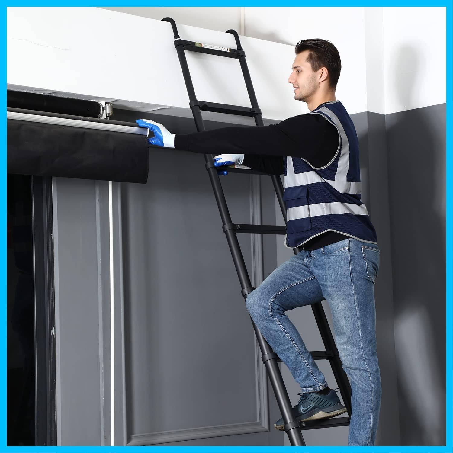 伸縮はしご 耐荷重150 kg 軽量 持ち運びやすい 折り畳み RIKADE 伸縮梯子 アルミはしご 自動ロック スライド式 伸縮自在 室内室外両用 フック付き ダークブラック 3 2