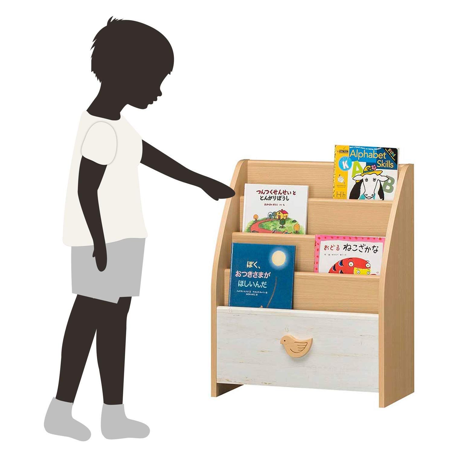 木製 リビングに置ける北欧テイスト 収納 かわいい 鳥のオーナメント 子供 ナチュラルブラウン ラック 幅56 3 絵本棚 高さ69 6 奥行26 5 cm 表紙が見える LAK 7055 BSA 白井産業 ランドキッズ
