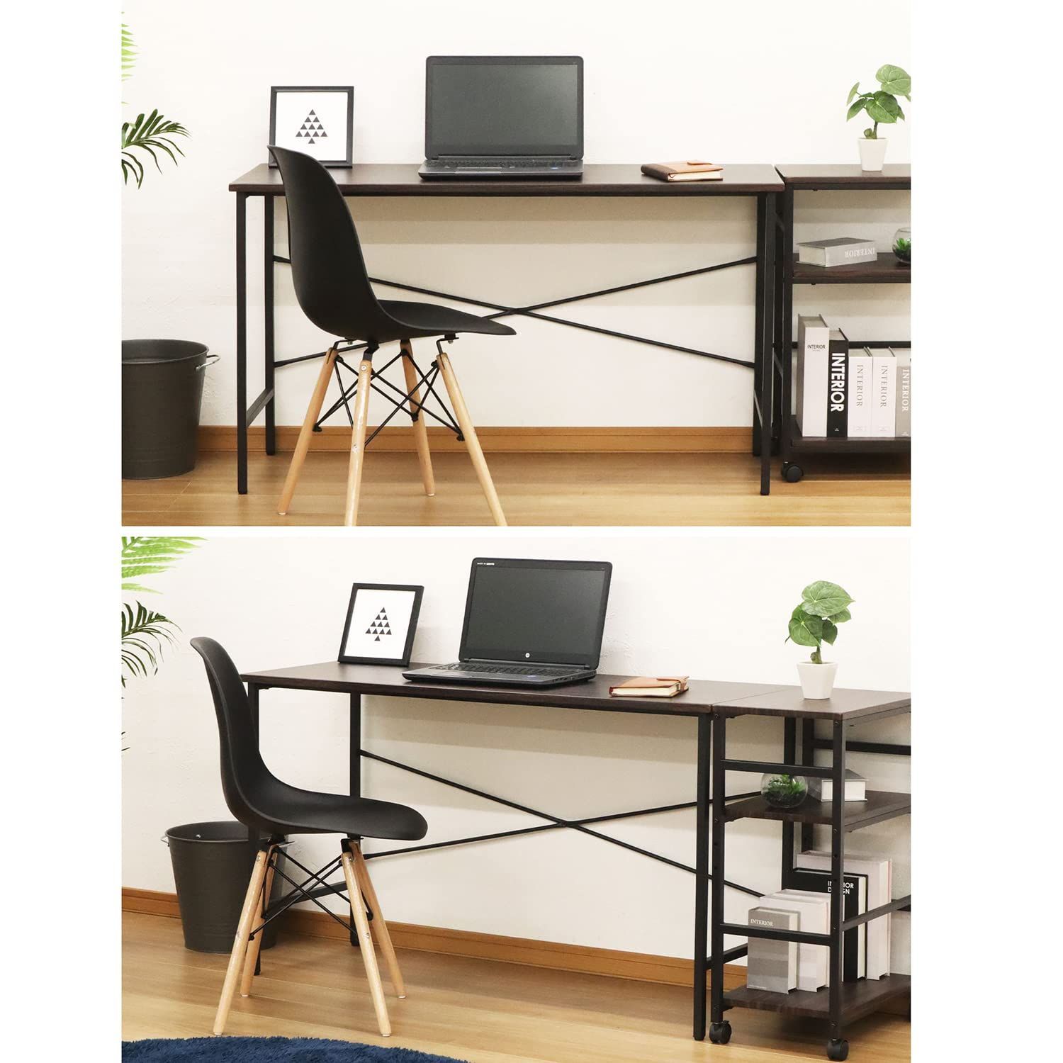 ●深いブラウンの木目調天板×ブラックフレームは、どんなテイストのお部屋にも合うシンプルデザイン。