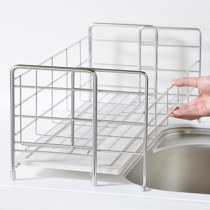水切りかご ステンレス 水切りラック スライド タイプ bws クッチーナ 大容量 スリム 水切りカゴ 水切り 伸縮 燕三条 おしゃれ ラック 珪藻土 吸水マット モイス MM 700088